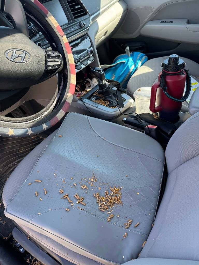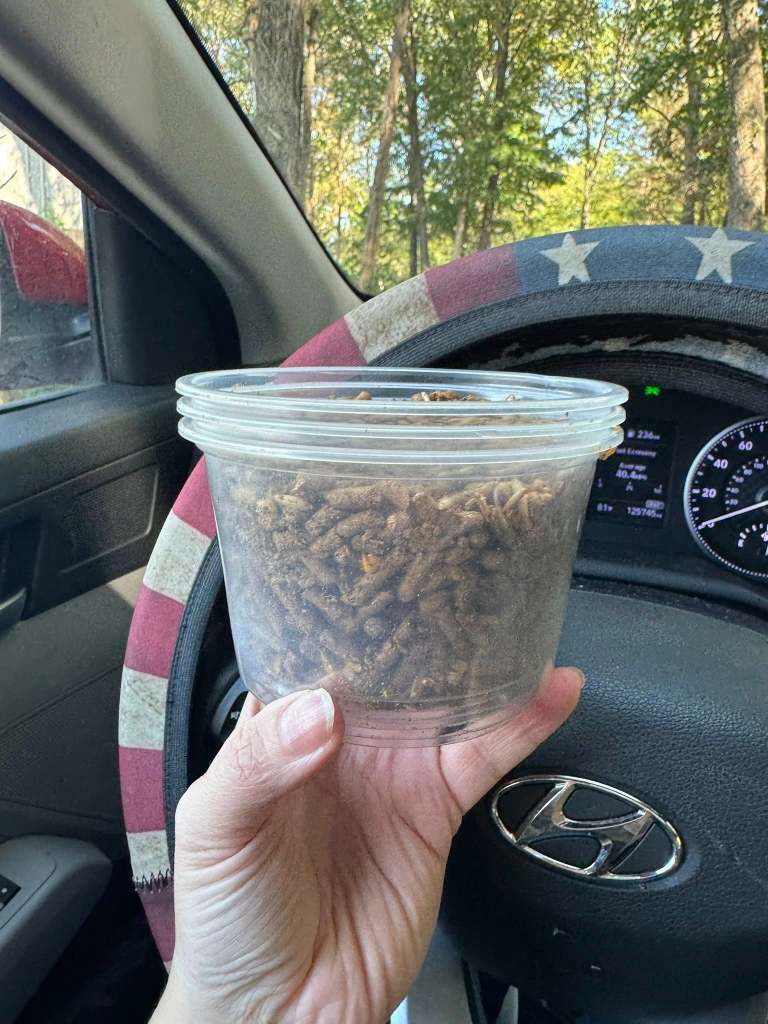 From there, my only choice was the wildlife drive-through. When I asked how much feed would be enough, I didn’t get much guidance, so I bought four cups. And when I say small, I mean tiny and flimsy. Between the bumps in the road and the aggressive emus, I ended up with feed scattered all over my car. Casualties were high. 😅